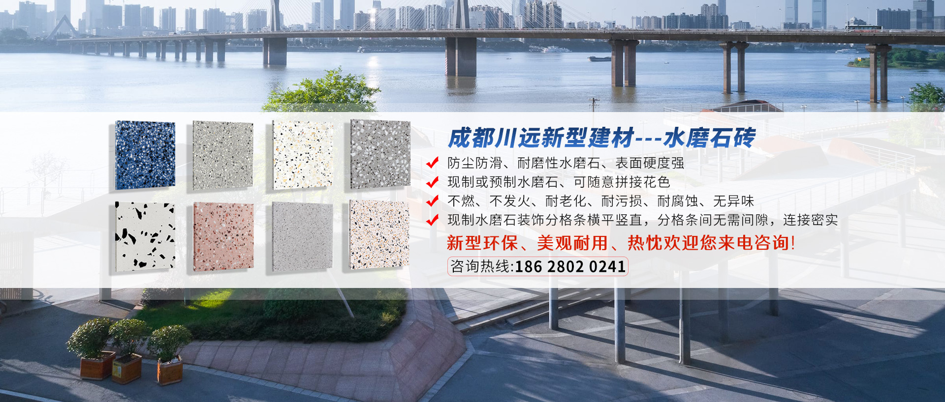 成都川遠(yuǎn)新型建材有限公司是一家專業(yè)化生產(chǎn)經(jīng)營透水磚、pc磚定制,仿石材路沿石、水磨石磚的企業(yè)。擁有了面積達(dá)1000多平方的生產(chǎn)基地,多套完整的大、中型生產(chǎn)設(shè)備和眾多專業(yè)生產(chǎn)技術(shù)人員。本廠生產(chǎn)的各種型號等...